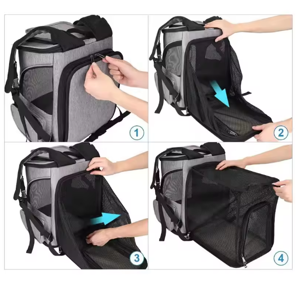 Breathable Pet Cat Carrier Backpack Foldable Pet Carrier Transport Travel Bag Expandable